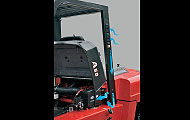 重心后移,整車縱向穩(wěn)定性提高,高位作業(yè)更穩(wěn)定。 標準車配置機罩安全鎖扣,保證了操作人員的安全。 |