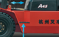 采用長軸距設計使整車的縱向穩(wěn)定性更好,相同起升高度起重量平均較原有叉車有很大的提高,同時減小后橋負荷,延長了轉向輪胎的壽命。 護頂架后腿加粗提高了護頂架的安全性能,確保操作員安全。 標準車配置機罩安全鎖扣,保證了操作人員的安全。 |
