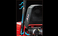 采用長(zhǎng)軸距設(shè)計(jì)使整車(chē)的縱向穩(wěn)定性更好,相同起升高度起重量平均較原有叉車(chē)有很大的提高,同時(shí)減小后橋負(fù)荷,延長(zhǎng)了轉(zhuǎn)向輪胎的壽命。 護(hù)頂架后腿加粗提高了護(hù)頂架的安全性能,確保操作員安全。 標(biāo)準(zhǔn)車(chē)配置機(jī)罩安全鎖扣,保證了操作人員的安全。 |